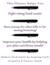 You can also use this planner to keep track of your pantry and freezer inventory so you always have the food you need on hand.
