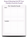 - Favorite Foods Pages: Write down your and your family’s favorite foods so you can also stay stocked on the things you love to eat.